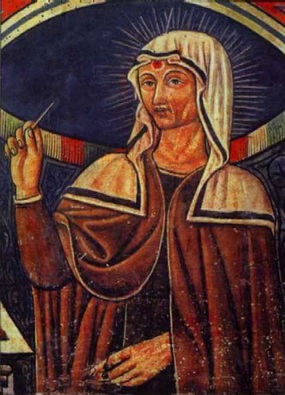 A los cinco días de su nacimiento, y estando entregada en un apacible sueño, apareció de improviso sobre la cuna donde dormía, un enjambre de abejas blancas, que revoloteaban en derredor de su entorno y entraban y salían de su boca, como si estuvieran elaborando dentro de ella un panal de miel.