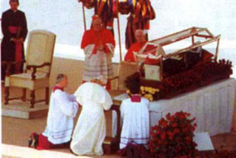EL PAPA ORANDO FRENTE A LA URNA DE SANTA RITA