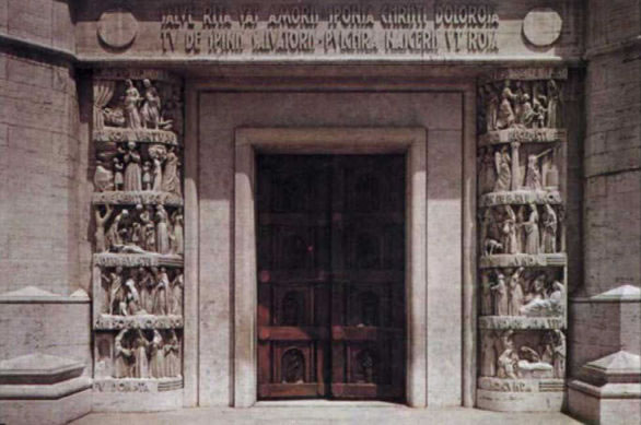 PUERTA DEL SANTUARIO CON ESCENAS DE LA VIDA DE LA SANTA