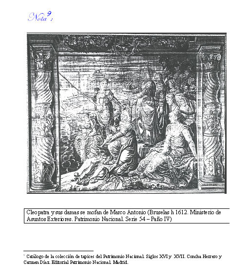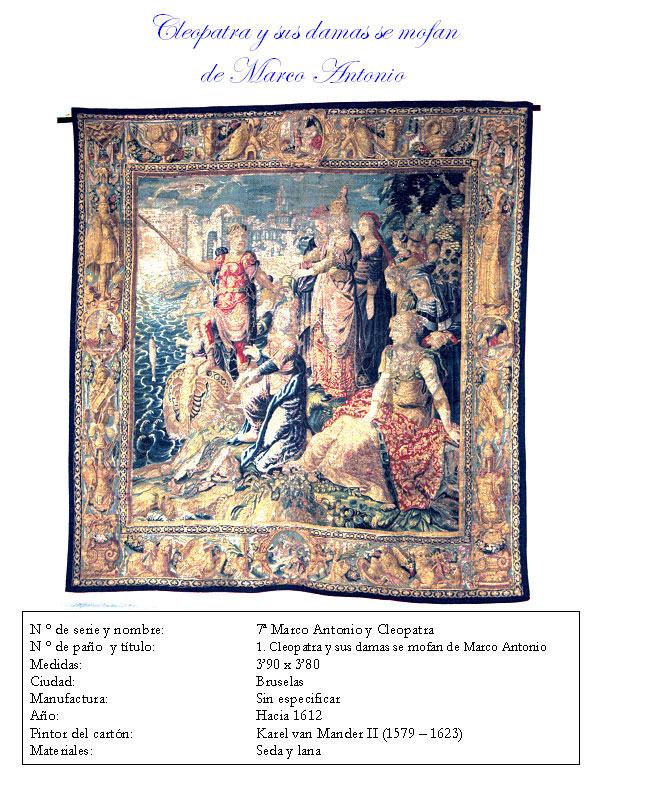 Cenefa con personajes y guerreros de inspiración netamente renacentista. La identificación del pintor de los cartones se debe a M. George. Wingsfiel Digby, conservador de textiles del Museo Victoria y Alberto de Londres.